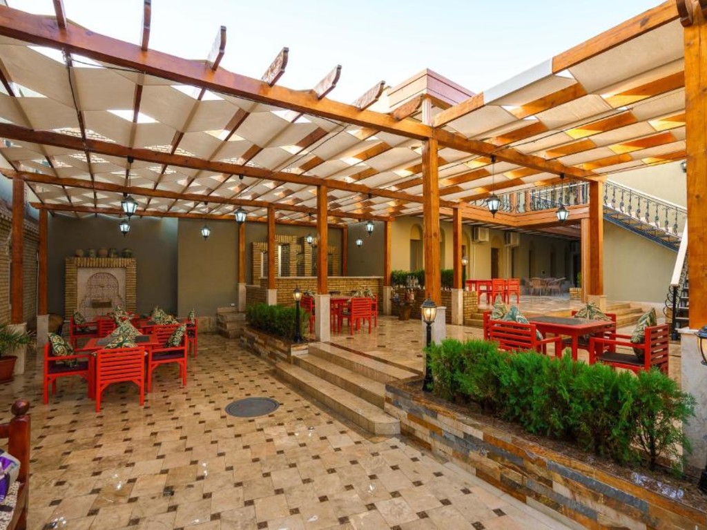 There is also a terrace, family rooms and a summer bar in the hotel. National and Western cuisine is served in the restaurant of the Malika-Bukhara Hotel. A wide variety of drinks is offered at the on-site bar. This hotel offers a rich buffet breakfast with National and European dishes.