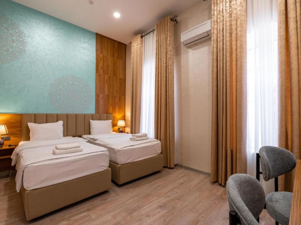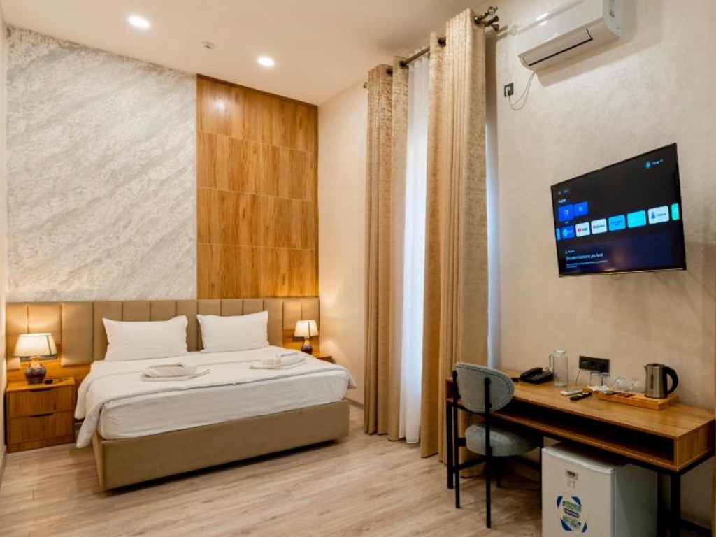The hotel offers the first-class service and the most modern facilities for their guests. It is a two-storey building and consists of three blocks. This hotel has 45 guestrooms including 4 Deluxe rooms that are furnished with air conditioners, cold and hot shower/bathtub, telephone, Wi-Fi, safe-box, interactive LED TV and minibar.